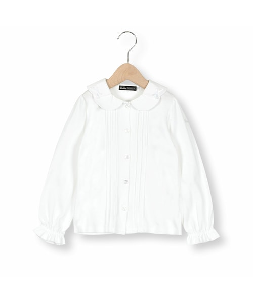 しわになりにくくやわらかな着心地のスムース素材を使用したブラウス。 花びらを重ねたような丸みがかわいいペタル襟になっています。 インパクトのある襟のデザインは顔周りを華やかに見せてくれます。 フロントタックを入れて1枚で着た時にもスタイリッシュな印象。 袖口にはギャザーを入れてあるので袖丈も収まりよく着ていただけます。 オケージョンシーンだけでなく普段のワンピースやニットのインナーとしても活躍する1枚です。 【BeBe(べべ)】 ”LOVE MODERN” 少しおませで、生意気なヨーロピアンカジュアルの提案。 時代性・流行性をとらえ、ベーシックでもワンポイントを施した遊び心、楽しさを盛り込んでいます。 シンプルだけど、こだわりのあるオリジナリティーを重視しています。