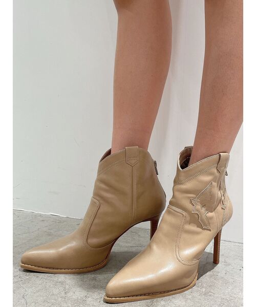 商品コメント:トレンドのウェスタンブーツですが、女性らしい細めのヒールのデザインで華奢な印象に仕上げています。足が短く見えないように設計された丈感や、側面に施されたオリジナルのウエスタン柄も拘りポイントです。靴下合わせをしても新鮮で可愛いです。S(22.5cm)/ストーム:2cm, ヒール:9.3cmL:(24.5cm)/ストーム:2cm, ヒール:9.5cm コーデ:デニムスキニーパンツ合わせは勿論ですが、POLO KTタイトOPなどのシンプルで女性らしいアイテムと合わせていただきカジュアルダウンしていただくのも可愛くオススメです。