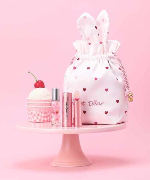 Kailijumei My Sweet Dear Collection(カイリジュメイ マイスウィートディア コレクション) 「Kailijumei/カイリジュメイ」の可愛いバニーポーチにベストセラーリップと新商品を詰め込んだ限定セット♪ブランドを代表するアイコンリップ「Kailijumei フラワーリップ 日本限定ピンクゴールドモデル」と、新商品の「Kailijumei フレグランスマルチオイル ミニ(ピンク) 」がセットになった、 乾燥が気になるこの時期にぴったりの唇と手肌をケアするコフレです。 自分へのご褒美として、もちろん大切な方へのギフトにも♪ 〈コフレ内容〉 ■Kailijumei フラワーリップ 日本限定ピンクゴールドモデル(ピンク)内容量:3.8g 氷の中で儚げに咲く一輪の花からインスパイアされた「カイリジュメイ フラワーリップ」。 唇の水分・体温・pHに反応して、あなただけの色に染まるマジックカラーティント*です。 ■Kailijumei フレグランスマルチオイル ミニ(ピンク)内容量:10ml フェイス・ボディ・ネイル・ヘアなどマルチに使える、まるでハーバリウムのような香りつき保湿オイル。 ■バニーポーチ *マジックカラーティント 唇の水分・体温・pHに反応して、一人一人異なる色に変化する不思議なリップ。 あなただけのナチュラルなピンクに発色するため、肌色を選ばず使いやすいアイテムです。リップの色選びに悩む必要もありません。 落ちにくいティント処方で、色落ちしやすい口紅の下地としてもおすすめです。 また「Kailijumei フラワーリップ 日本限定ピンクゴールドモデル」は、植物由来の天然保湿成分*を配合した、高品質な日本限定のモデルです。 ・天然成分*(ローズヒップ油、ツバキ油/保湿)配合 ・トコフェロール配合(保湿) ※製造時期やロットにより、お花のお色味の濃淡に若干差が出る場合がございます。予めご了承ください。 ※リップの中のお花は本物のドライフラワーのため、個体差がございます。お花の見た目によるご交換ご返品は受けたまわっておりません。 ※リップの中の気泡は不良品ではなく、手作りのためお花挿入の際に入るものです。 ※当商品は寒さや湿気に少し弱いため、出荷時は透明度の高い状態で発送させて頂いておりますが、環境や季節により曇りを伴う場合がございます。 ※光の加減でお花のお色が写真とは若干異なって見える場合がございます。 Kailijumei 金粉とお花を閉じ込めた、まるでガラス細工のように美しい、斬新なデザインのコスメを展開するコスメブランド。 見た目の可愛さからSNSでも話題が広がり、今では大ヒット商品に。 見た目だけじゃなく、使い心地も夢のようなリップを展開しています。 #コスメ #ナチュラルコスメ #バースデー #クリスマス #バレンタイン #プレゼント #誕生日プレゼント #ギフト #贈り物 #ギフトセット #誕プレ #コフレ #クリスマスコフレ #クリスマス #ホワイトデー #誕生日 #母の日 #記念日