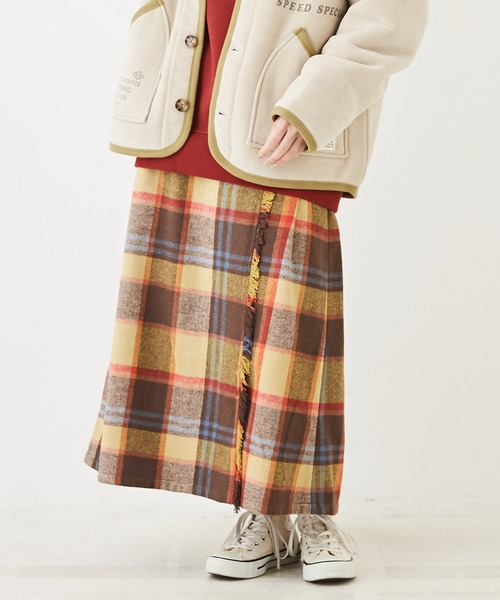 ■1枚で着映えする、チェック柄巻きスカート 秋冬を感じるカラーリングの大柄チェックと素材感が、クラシカルに彩るロングスカートが登場。 手軽にレトロ&トラッドな雰囲気がプラスされ、大人シックに映えるスタイリングを作ってくれる主役のチェックスカートです。 巻き風デザインとフリンジディティールのスカートがオシャレ見えしてくれるポイントになります。 ウォーム感のある個性豊かなカラーリングが、暗くなりがちな秋冬のスタイリングをぱっと華やかに彩る1着です。 暗くなりがちなウィンターコーデを鮮やかに彩る、ちょっぴり個性派なロングスカートをゲットしてみてはいかがですか。 ■安心設計なラップスカート カジュアルなのにどこか上品に見せてくれるラップ風デザインは、いつものトップスに組み合わせるだけでスカートスタイルが新鮮になります。 フロントの生地を重ねた部分は、隙間のない繋がったプリーツ状で、はだける心配がなく安心して着用できますね。 ■インスタイルも映える「後ろゴム」 バック側はゴム入りで、目立たず楽ちんな着心地感に。 ハイウエストに履いて、トップスインのスタイリングもお洒落に決まるのでおすすめです。 付かず離れずゆとりのあるサイズ感は、気になる足のラインを拾わず、裾に向かって広がるフレアシルエットが美脚効果も期待できますね。 ■季節感あるソフトな起毛 表面にふわっと微起毛をかけたひと手間をプラスし、見た目にも暖かく今の季節にピッタリな素材。 どれもほっこりと温かみのある雰囲気に仕上がっているので、色違いで揃えておくのもおすすめです。 優しい肌触りと暖かな着心地なので、着るだけでホッと安心感に包まれますね。 同素材で「シャツ・スカート」をご用意しています。 セットアップやリンクコーデでの着用、色違いやデザイン違いでの購入もおすすめのアイテムです。 (品番)シャツ:73090583 スカート:73091584 ■透け感/なし ■伸縮性/なし ■張り感/ややあり ■裏地/あり 《お気に入り登録》でお得な情報を受け取れます! ・「商品のお気に入り登録」で再入荷通知や、セール通知を受け取ることができます。 ・「ブランドのお気に入り登録」で新商品や再入荷など、お得な情報を受け取ることができます。 ※モニター・環境等により実際の商品と多少色味が異なって表示される場合がございます。予めご了承をお願い致します。 【アイテムカテゴリ】 ボトム ボトムス ボトム スカート ロングスカート マキシスカート タイトスカート 巻き風スカート ラップスカート風 チェックスカート チェック柄スカート 巻き風スカート フリンジスカート フレアスカート セミフレアスカート ラインスカート Aラインスカート 【デザイン】 フリンジ 総柄 チェック柄 タータンチェック マドラスチェック 【シルエット】 ビッグシルエット ビッグサイズ オーバーサイズ ルーズ 大きいサイズ ゆったり 大きめ 着心地 楽ちん 動きやすい ジャストサイズ コンパクト 細い 細め 細身 細見え タイト スッキリ 美ライン 美シルエット 着痩せ効果 着やせ Mサイズ ワンサイズ フリーサイズ マルチサイズ ミディアム ミディアム丈 ミドル ミドル丈 ロング ロング丈 ミモレ丈 フレア セミフレア ウエストゴム ゴムウエスト 後ろゴム バックウエスト 【生地・素材】 防寒 あったかい あたたかい 暖かい 起毛 ポリエステル 【カラー展開】 ブラウン グレー イエロー ネイビー グリーン クレイジー クレイジーパターン ミックス 茶 灰色 黄色 緑 紺 マルチ マルチカラー 秋色 秋カラー 冬色 冬カラー くすみカラー スモーキーカラー ベイクドカラー ビビットカラー ビビッドカラー 【ファッションテイスト】 ウィメンズ コーディネート 可愛い かわいい かっこいい お洒落 おしゃれ 大人 個性的 トレンド 大人カジュアル アメカジ アメカジファッション アメリカンカジュアル 出かけ着 普段着 デイリー 着痩せ 着回し ペアルック デート お出かけ おそろい タウンユース デイリーユース アメカジブランド アウトドアスタイル アウトドアファッション レトロ ワークウェア 大人ナチュラル ラフ ストリートファッション ストリート系 ストリートスタイル メンズライク ボーイッシュ ガーリー キレカジ きれいめカジュアル ワンマイルウェア 休日コーデ ストレスフリー フレンチカジュアル レイヤードコーデ 【シーズン】 秋 冬 2シーズン ツーシーズン 秋冬 秋コーデ 冬コーデ 秋服 冬服 秋物 冬物