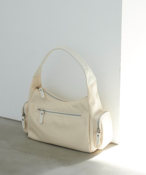 マシュマロのようにふかふかのハンドルがポイント!【デザイン・シルエット】 肩や腕あたりはやさしく、でもBODYは微光沢のあるナイロン調の素材できりっとカッコよく仕上げたワンショルダーです。 <POINT> ・ミリタリーライクな立体ポケットがこなれ感と実用性を兼ね備えたデザイン。 ・AirPodsや鍵などを入れるのに便利です。 ・フロントのポケットにはすぐに取り出したい携帯やICカードを収納いただけます。 ・本体には500mlペットボトル、長財布、ハンカチ、ポーチが収納出来ます。 ・シンプルなコーデにさらっと持つだけで決まる、オールシーズンお使いいただけるバッグです。 【カラー】 ベーシックからアクセントカラーまで、ミリタリー感のある4色展開。 ----------------------------- ポケットの数:内×1、外×3 A4収納:× 長財布収納:〇 500mlペットボトル:〇 ショルダー紐:なし ----------------------------- ※画像の商品はサンプルです。 実際の商品と仕様、加工、サイズが若干異なる場合がございます。