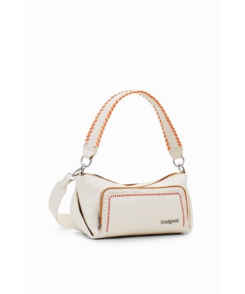 レザー調素材のミドルショルダーバッグ。コントラストを演出するディテール、多様なストラップ、コンパートメントとポケットをあしらいました。 【Desigualデシグアル】 バルセロナ発のファッションブランド「Desigual(デシグアル)」。スペイン語で“他とは違う”という意味が現すとおり、他のブランドにはない地中海をイメージさせるカラフルな色使いやエキゾチックなパターン、パッチワークやデニムなど着る人の個性を引き立てるアイテムを展開。デイリーにも、ドレスアップにも活躍する幅広いデザインが魅力。レディースだけではなく、メンズやシューズなど幅広いラインナップを展開。ブランド名にもなっているDesigual(他とは違う)は、自分自身が他の人と違うことがどれだけ大切で楽しいことなのかを改めて感じてもらいたいという私たちの願いが込められています。 自由で楽しく、カラフルで前向き。本当の自分を呼び覚ます鮮やかなカラーやプリント、他とは一味違うスタイルはファッションを楽しくするものばかりです。
