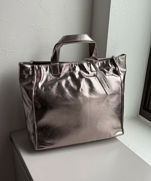 ◇fredy emue◇ 【2023 AW】 シンプルさが使いやすい!トレンドライクなメタリック素材のトートバッグ ●point ・トレンド感のあるメタリック素材がコーディネートのポイントになるトートバッグ ・合成皮革の柔らかな質感は使い心地が良く、軽く持ち運べる点も嬉しいポイントです ・底とサイドに幅広のマチがついているので収納力も抜群です ・短めのハンドルと横型のスクエアシルエットが大人可愛い、品のある雰囲気を演出します ・チャーム付きでシンプルな中にワンポイントアクセントがあるのも嬉しいポイント ・トレンドライクなデザインに加えて収納力もあるので、ちょっとしたお出かけや習い事用にもおすすめです 《収納の目安》 ・A4ファイル ・500mlペットボトル ・長財布 ・ポーチ ・折りたたみ傘 ・タオルハンカチなど ●お取扱い上のご注意● *アテンションタグを必ずご確認の上、着用又はお取り扱い下さい。 *店頭及び屋外での撮影画像は、光の当たり具合で色味が違って見える場合があります。商品の色味は、スタジオ撮影の画像をご参照下さい。 *商品画像に関しては出来る限り忠実に表示出来るよう努めておりますが、お客様がご利用のモニターの設定及び特性により、実際の商品と比較し色味に若干の誤差が生じる場合があります。 ◇商品のお気に入り登録◇ 【お気に入りに登録 ♡マークをクリック】を是非ご活用ください! 再入荷の通知や、ラスト1点の通知、セールの通知がいち早く届きます。 ◇ブランドのお気に入り登録◇ 新商品や再入荷など、いち早くブランドのお得情報が届きます。