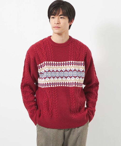 秋冬のスタイリングに彩りをプラスしてくれるジャカードニット ■デザイン ゆとりのあるリラックスシルエット。 インパクトのあるジャカード柄と、さりげなくデザインされたケーブル柄が特徴です。 ■素材 毛×ナイロンのブレンド素材。 ■コーディネート 一枚着としてはもちろん、ウールコートなどのインナーに合わせてもアクセントとして活躍します。 程よくゆとりのあるボトムスと合わせると、シルエットがまとまっておすすめ。 #holidayギフト ============================ 裏地:なし 透け感:なし 光沢感:なし ケア方法:ドライクリーニング ============================ 【注意事項】 ※商品を使用前に、タグ等に記載されている「取り扱い上の注意書き」、「洗濯表示」を必ずご確認ください。 ※商品画像は、光の当たり具合やパソコンなどの閲覧環境により、実際の色味と異なって見える場合がございます。あらかじめご了承ください。 ※商品の色味の目安は、商品単体の画像をご参照ください。 店舗へお問い合わせの際は、全国のgreen label relaxing各店舗まで下記の品名/品番をお申し付けください。 品名:SC アランJQ クルー 品番:32131401373