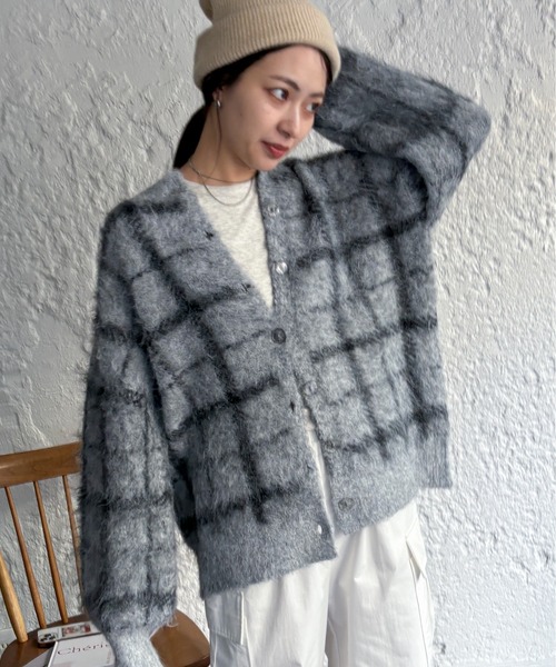 前後で2通りの着こなしが楽しめるチェックカーディガン ウール混の毛足の長いシャギー糸で編み上げたニットは保温性に優れアウター感覚で着用できます。 ふんわりとした生地感に柔らかな配色のチェックが女性らしく優しい印象に。 羽織りとしても、プルオーバーで着用してコートインにも様々な着回しが楽しめるアイテムです。 COORDINATE ・Tシャツ×デニムの王道スタイルに羽織ってカジュアルコーデ。 ・プルオーバーで着用しダウンベストとレイヤード。 ・長めな丈なのでミニボトムとも好相性です。 DETAIL 厚み:★★★★★ 保温性:★★★★☆ 着回し:★★★☆☆ SEASON 秋・冬 ※照明や天候、閲覧環境によって実際の色味と異なって見える場合がございます。予めご了承ください。 INFORMATION 気になるアイテムは♡マークをクリックでお気に入り登録 ・お買い逃がし対策…完売商品の再入荷やラスト1点の情報をお知らせ ・お得情報をゲット…値下げやクーポン対象になったらいち早くお知らせ ・スムーズ検索…ZOZOのお気に入りアイテムページで簡単checkできるから、再検索不要♪