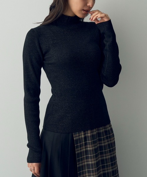 きらきらとしたラメを含んだ生地が華やかな風合いを演出するニット。 ハイネックのデザインで、首元まで暖かさを守ってくれます。 伸縮性のあるリブ生地が程よいフィット感をプラス◎ 1枚で着用したり、他のトップスとレイヤードも楽しめるアイテムです。 透け感[無し] 裏地[無し] 伸縮性[有り] 光沢感[有り] 生地の厚さ[普通] 付属品[無し] ポケット[無し] ●製品寸法: F:バスト34cm 着丈56cm 袖丈62cm 肩幅32cm 裾幅33.5cm 備考: