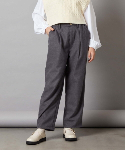 ◆フロントタックできれいシルエットのテーパーパンツ◆【デザイン】・フロント部分にワンタック入りで大人っぽくきれい見えするシルエット。 ・ヒップやもも周りはゆとりがあり体形カバもーできて、動きやすさも◎ ・両サイドにポケットが付いているので通学にも便利。 ・後ろゴム仕様で、子どもでも着脱楽ちん。 ・大人っぽいテーパードシルエットでおしゃれなデザイン。【素材】あたたかみのある布帛素材。【スタイリング】・スウェットと合わせたカジュアルミックスコーデがおすすめ! ・シンプルなシルエットなので、ニットやトレーナーを合わせやすい。 ・ロンTやコンパクトなトップスをボトムインして着るのもかわいい。 ・ブラウスと合わせれば女の子らしさとトレンド感をプラス。 ・グレーとブラックの着まわしやすいカラー展開。 【カラー】・グレー…トレンドのグレーはコーデに取り入れるだけで旬顔になるグレー。 ・ブラック…おしゃれでかっこいいシンプルなブラック。----------------透け感:無し裏地:無し伸縮性:無し光沢感:無し生地の厚さ:やや厚い----------------≪お気に入り登録機能の使い方≫■商品のお気に入り登録(ハートマークをクリック)再入荷通知や値下げ等、お得なご案内を受けることができます。 ※WEB・一部店舗限定販売です。※同じデザインの140サイズ/150サイズ/160サイズがございます。140サイズ/150サイズ商品コード:KJLAW70039160サイズ商品コード:KJLAX70044----------------※サンプルでの撮影となるため、実際にお届けする商品と仕様やサイズが異なる場合がございます。※商品画像は、光の当たり具合やパソコンなどの閲覧環境により実際の色味と異なって見える場合がございます。 商品の色味の目安は商品単体の画像をご参照ください。