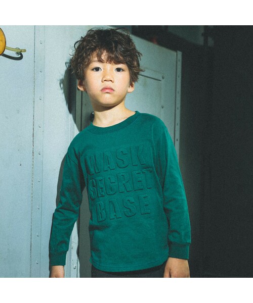 フロントの大きなロゴをエンボス加工で表現したインパクト抜群の長袖Tシャツ。 背面にさりげなくプリントしたサルには金槌を持たせており、エンボスロゴを組み立てているイメージを表現しています。 ポコポコしたロゴブロックの手触りがとっても楽しく、遊び心ある一着となっております。 非常に柔らかく肌触りの良い天竺素材を使用したシーズン通して大活躍間違いなしのデイリーアイテムです! カラーは、わんぱくボーイにぴったりなレッドとグリーンの2カラーでのご用意。 デザイン性は高いのに全体の雰囲気はシンプルなので、様々なボトムスと合わせてご着用いただけます♪ タイトなボトムスやブルーデニムなど定番ボトムと合わせたスタイリングも◎ 通学や遊びなどのデイリーユースにぴったりなアイテムとなっております。 お友達やご兄弟との色違いコーデもお楽しみいただけます。 【 WASK(ワスク)】 WEEAGEDSAUCYKID「我々は小生意気な子供である・・・」 自由で遊び心満載な男の子たちへ アメリカンテイストをベースにその時々のトレンドや異なる要素をプラス エッジの効いたカジュアルスタイルをキッズウェアで表現