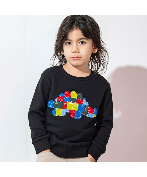 WASKで大人気の恐竜シリーズの長袖トレーナー。 恐竜をレトロなゲームのノイズ画面をイメージしてサガラワッペンで仕上げました。 ブラックにはティラノサウルス、グリーンにはステゴサウルス。 バックは、ピクセルアートで表現したゲームのカードを厚盛プリントで施しており、触ったときの凸凹も特徴的です。 男の子が大好きな恐竜が盛りだくさんの楽しいデザインです。 肌触りの良いソフト裏毛(裏パイル)を使用しており、着心地良好♪ カラーは男の子に人気なブラックと、深みのあるお洒落グリーン(モスグリーン)での2カラー展開。 カラフルでお洒落なWASKならではのオリジナリティ溢れる一着です♪ どんなボトムスとも相性ばっちり◎ 遊びや通学など、デイリーユースとしてピッタリな一着となっております。 【 WASK(ワスク)】 WEEAGEDSAUCYKID「我々は小生意気な子供である・・・」 自由で遊び心満載な男の子たちへ アメリカンテイストをベースにその時々のトレンドや異なる要素をプラス エッジの効いたカジュアルスタイルをキッズウェアで表現