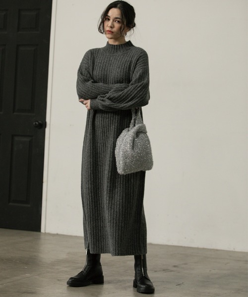 ------------------------------------------------- ▼ お気に入り登録 500人突破!------------------------------------------------- たっぷりゆとりのあるオーバーサイズが可愛いハイネックニットワンピース。 【デザイン】 ・袖にボリュームをもたせたオーバーサイズなシルエットがこなれ感あるワンピース。 ・さらりと一枚で着こなすのはもちろん、パンツレイヤードで女性らしいカジュアルコーデもおすすめ。 ・足元をロングブーツで合わせると、今年らしいバランス感に。 ・MIXカラーの色合いや、ニットの表情感が、スタイリングのポイントになるアイテムです。 ※ポケットなし 【素材】 ・ふわっとした起毛感とMIX見えカラーが素敵な糸を使用した、ミドルゲージリブ編みニットです。 ・マシンウォッシャブルでご自宅でのお洗濯も可能。 ※裏地なし モデル情報:身長163cm B77 W56 H87 着用サイズ:38(M) 店舗へのお問い合わせ商品番号:637-57015 ●製品寸法: 36(S):着丈115cm B98cm 袖丈49cm タートル部分H7cm 肩幅49cm 38(M):着丈117cm B102cm 袖丈50cm タートル部分H7cm 肩幅51cm 40(L):着丈119cm B106cm 袖丈51cm タートル部分H7cm 肩幅53cm 42(LL):着丈119cm B110cm 袖丈52cm タートル部分H7cm 肩幅55cm 備考: