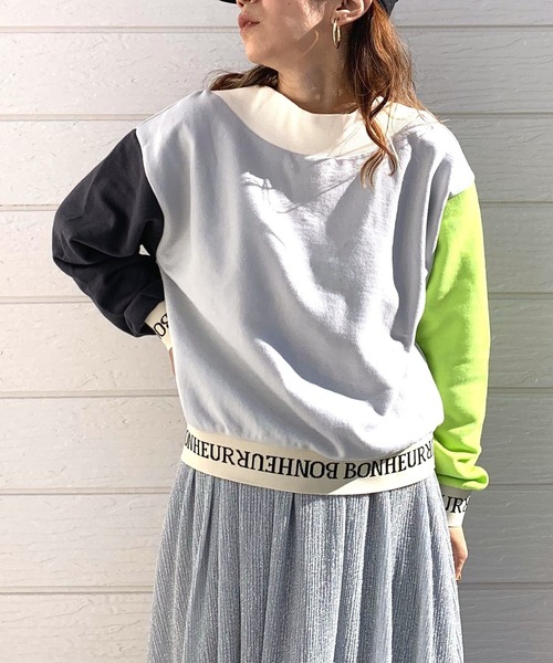 カラフルなカラーが目を惹くトレーナーです。 部分的にカラーを変えたカラーブロックデザインがおしゃれ。 裾と袖部分には、メッセージロゴを配してより個性的に仕上げました。 1枚で主役級のアイテムなので、シンプルなボトムスとのコーディネートがおすすめです。 《インフォメーション》 ◆商品のお気に入り登録 完売していても再入荷時に再入荷通知を受け取ることができますので、是非ご登録ください。 ◆ブランドのお気に入り登録 新商品や再入荷などの情報を受け取ることができますので、是非ご登録ください。