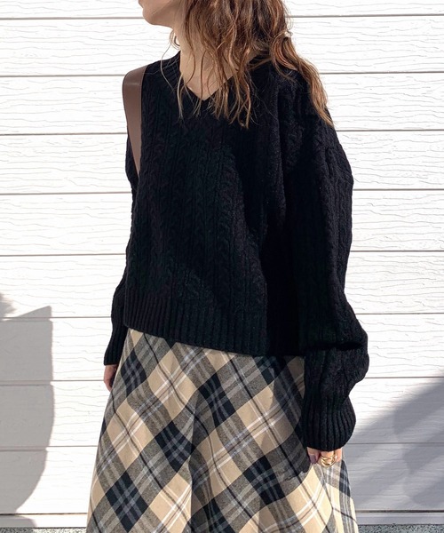 【セットアップ対応アイテム】大人女性におすすめの上品なケーブルニットです。抜け感のあるVネックでゆったりとしたシルエットとケーブル編みが特徴で、セットアップとしてもお使いいただけます。デニムやスカートなど、様々なボトムスとの相性も抜群です。シンプルなデザインで他のアイテムと合わせやすく、着回し力もバツグンです。セットアップで着れば大人の女性らしいスタイリングを叶えてくれます。同素材のスカート【ZOZO問い合わせ番号:80336137】もご用意しているのでセットアップとしてお召しいただくのもおすすめです。《インフォメーション》◆商品のお気に入り登録完売していても再入荷時に再入荷通知を受け取ることができますので、是非ご登録ください。◆ブランドのお気に入り登録新商品や再入荷などの情報を受け取ることができますので、是非ご登録ください。