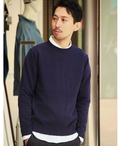 EDIFICE(エディフィス) ハリ感としなやかな生地感が特徴のコットン素材を使用したクルーネックニット。春先でも使用しやすいボリュームを抑えたすっきりとしたシルエットは、ジャケットなどのインナーからシャツなどと合せたレイヤードスタイルなどにもお勧めです。