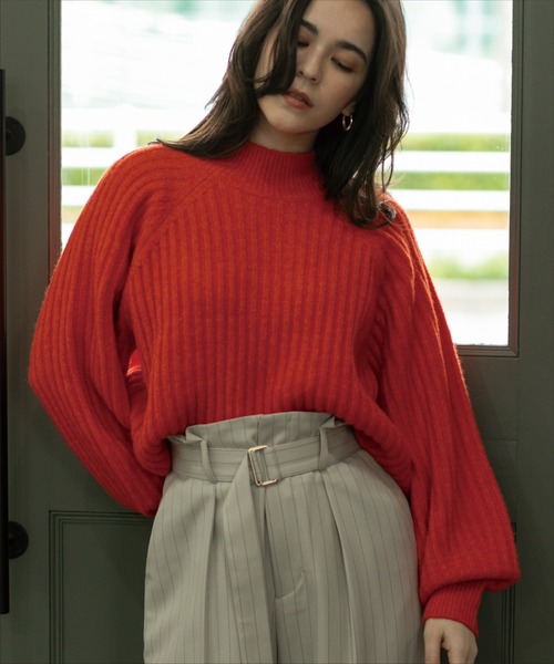丈バランスが今っぽい!ハイネックニット。【デザイン】・トレンドのクロップド丈でお作りしたハイネックリブニットです。・ラグランスリーブとワイドシルエットのゆとりあるサイズ感で、程よいカジュアルさを。・短めの丈感バランスが、スカートにはもちろん、パンツとも相性良くスタイルアップ効果も期待できます。・MIXカラーの色合いや、ニットの表情感が、1枚でもスタイリングのポイントになるアイテムです。【素材】・ふわっとした起毛感とMIX見えカラーが素敵な糸を使用した、ミドルゲージリブ編みニットです。・マシンウォッシャブルでご自宅でのお洗濯も可能。モデル情報:身長163cm B77 W56 H87 着用サイズ:38(M)店舗へのお問い合わせ商品番号:637-17101●製品寸法:36(S):着丈43cm B102cm 袖丈64cm タートル部分H7cm38(M):着丈45cm B106cm 袖丈65cm タートル部分H7cm40(L):着丈47cm B110cm 袖丈66cm タートル部分H7cm42(LL):着丈47cm B114cm 袖丈67cm タートル部分H7cm備考: