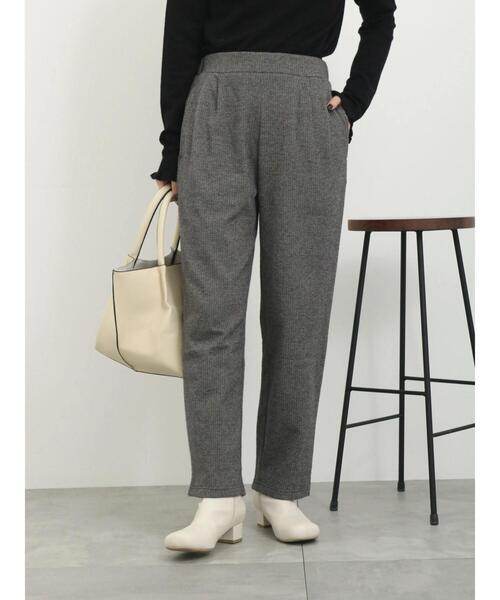 ヘリンボーン柄がクラシカルな雰囲気を漂わせるイージーパンツ。 ほど良くゆとりをもたせたテーパードシルエットで、穿き心地も良くシルエットもすっきり見せてくれます。 ウエストは後ろゴム仕様で安心感のある穿き心地◎ 落ち着いたカラーで品良くスタイリングでき、オンオフ幅広く活躍してくれるアイテムです。 ※商品画像は、撮影環境やお客様のご利用のPC・スマートフォンのモニター環境などにより実物と色味に差異がある場合がございます。 【その他採寸】 F ウエスト:[後ゴム仕様]66cm
