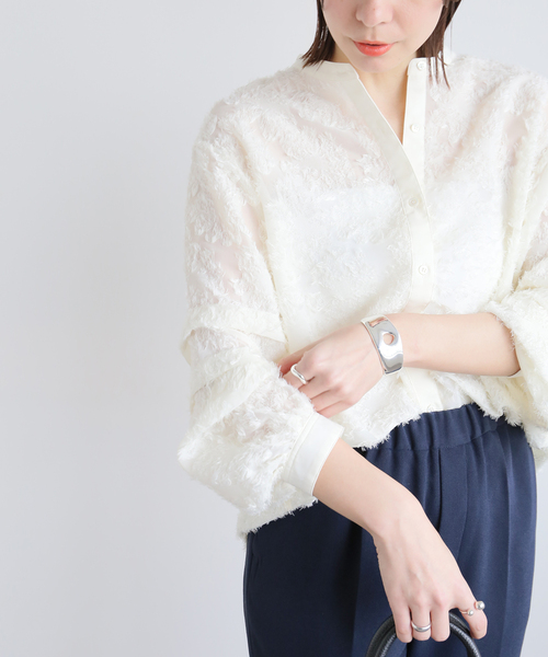 【2023AW】 JOURNAL STANDARD relume たくさんのリクエストありがとうございます!! 大好評につき追加生産決定! ※旧品番22051462509040、23051462103030の追加商品です。 ※若干の仕様変更がある場合もございます。 ※旧品番はすでに店舗に入荷している品番と、今後入荷予定の品番を混在して掲載しております。 在庫数等は店舗にお問い合わせ下さいませ。 ※《ホワイト》のみの追加生産です。 ◆シーズンレスで活躍する、軽やかさが魅力のジャガードブラウスが登場! 華やかな印象の花柄をモチーフにしたジャガードブラウス。 上品な透け感がこなれ感を演出してくれます。 袖にタックが入ったボリュームスリーブがポイント。 デニムやチノパンと合わせた大人カジュアルな着こなしがおすすめ。 綺麗めなボトムスを合わせればオケージョンにも◎ ※取り扱いについては、商品についている品質表示でご確認ください。 ********************** 透け感:あり 裏地:なし 伸縮性:なし 光沢感:なし 生地の厚さ:薄手 ********************** 【スタッフ着用コメント】 《スタッフM》 身長:160cm/普段サイズ:M/着用サイズ:FREE サイズ感: 身体のラインを拾わないゆったりとしたサイズ感ですが、落ち感があるのでスッキリとした印象です。 素材感:さらっとした素材感。ジャガードに立体感があり華やかな雰囲気。 着心地: 軽さのある春にピッタリなブラウスです。ジャケットやベストとも相性良く着こなせそう! ********************** ※照明の関係により、実際よりも色味が違って見える場合があります。 またパソコン・スマートフォンなどの環境により、若干製品と画像のカラーが異なる場合もございます。 ※商品の色味は、商品アップ画像をご参照ください。 本体:洗濯機洗い(弱)