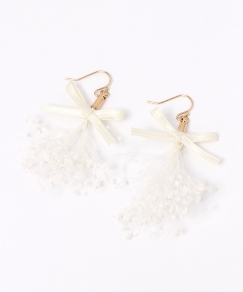 MADE IN JAPAN☆ 日本製のプリザーブドフラワーを使ったピアス。 小さな花束のようなデザインで、可憐な印象が出せます♪ フワフワした感じのカスミ草がかわいく、とくに、ホワイトがおススメ。 普段着はもちろん、成人式や、セレモニーなどもおススメしたいアイテムです。 【お買い物が便利になる機能がたくさん!】 ▼商品のお気に入り登録▼ 完売アイテムの再入荷通知、ラスト1点、またクーポンやお値下げ通知をお知らせします。 ▼ブランドのお気に入り登録▼ 新商品や再入荷のお知らせ等、いち早くブランドのお得な情報を受け取ることができます。 ぜひご登録ください。