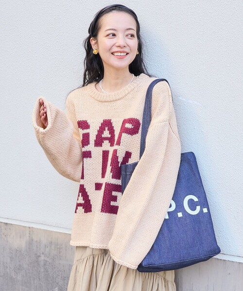 2023 Fall & Winter item キャッチーなビッグロゴが目を惹くオーバーニット ●大胆なビッグロゴデザインが存在感抜群のオーバーサイズニット ●ざっくり感と、切りっぱなし風のデザインがポイント ●ウール混のしっかりとしたニット素材で保温性もばっちり◎ ●ご自宅で手洗い可能 おすすめコーディネート カーゴパンツや太めのタックパンツにスニーカーを合わせてボーイズライクなスタイルはもちろん、フレアスカートやタイトスカートで女性らしさをプラスしても可愛く着こなせます。 また、シャツやボーダーカットソーをレイヤードするのもおすすめ。 ゆるっとルーズに着こなせるのが魅力のアイテムです。 --------------------------------------------------------お気に入り登録のオススメ ▼商品のお気に入り登録▼ 再入荷、残り1点、セールなどの通知を受け取ることができます。 ▼ブランドのお気に入り登録▼ 新商品や再入荷、ショップのおすすめトピックスなど、いち早くブランドの情報を受け取ることができます。 -------------------------------------------------------- ※こちらの商品は、弊社管理上のカラーを表記しております為、タグのカラー表記と異なる記載となっております。 【サイト表記:タグ表記】 ・チャコールグレー:CHARCOAL ・ベージュ:BEG ・グリーン:GRN ※掲載画像の商品の色味は、屋外や屋内の光の照射や角度により実物と色味が異なる場合がございます。また表示のサイズ感と実物は若干異なる場合もございますので、予めご了承ください。 ※着用、お取り扱いの際は、商品についている品質表示とアテンションタグを必ずご確認下さい。 【FREAK'S STORE/フリークスストア】 「アメリカの豊かさとワクワク・ドキドキを日本に伝えたい」という想いからスタート。1986年の創業以来、洋服、雑貨、インテリアなど自分たちが本気でカッコ良いと思うものをセレクト。積極的に楽しむ生活体験者=フリークとして、アメリカンライフスタイルの楽しみ方を提案するセレクトショップです。