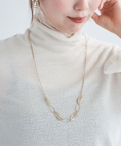 魅力溢れるリーフデザインが特徴のモチーフネックレス。細身のチェーンを使用することでよりリーフデザインに存在感が溢れスタイリングのアクセントにピッタリな逸品です。存在感溢れるデザインなので長めのチェーンを使用することで調和がとれ扱いやすいアイテムとなっています。アクセサリーを楽しみたい方にピッタリなネックレスです。