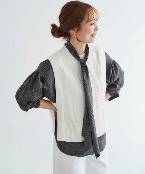 1点投入で雰囲気が変わるベストはシーズンレスで重宝するアイテム。 レイヤードを楽しめる一枚です。 ●ポイント 脇がオープンなのでボリューム袖やフレア袖との合わせも可能。 ブラウスやシャツはもちろん、ハイネックのインナーで重ねても◎ どんなテイストのボトムスとも相性抜群なのでお好みのアイテムと合わせて。 ●おすすめコーデ カットソーやシャツにデニム・ワイドパンツ合わせのカジュアルスタイルから、 レーススカートやワンピースとの合わせもおすすめです。 ==================== 透け感:なし 伸縮性:あり 光沢感:なし 生地の厚さ:やや厚手 ==================== ※商品はサンプルで撮影しております。 実際の商品と仕様、加工、サイズが若干異なる場合がございます。
