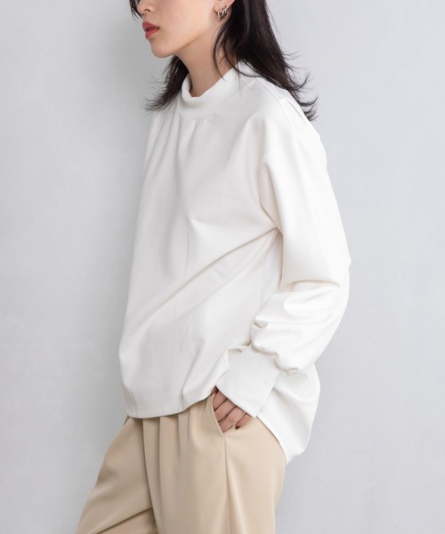 ■2024 PRE SPRING collection■ ポンチ×布帛をドッキングしたトップス 衿ぐりの配色がポイント インナーでも1枚でもきれいめカジュアルなコーディネートに大活躍するトップスです。 前身頃、袖はふくらみのあるポンチ素材を使用しています。 後身頃は布帛で両サイドにタックを入れたデザインになります。 タックを入れたことで身体からはなれる立体的なシルエットがポイントです。 袖口はリブになっているので、たくし上げて着てもホールド感があり、ボリュームのある袖を作りだします。 また衿と袖口のリブでカジュアルダウンした抜け感のあるスタイルが完成されます。 ホワイト以外のカラーは衿リブが配色で、デザインポイントです。少し太めリブがモードな印象を与えます。 ニットなどのインナーに、衿ぐりからちらっと見える配色リブがおしゃれ度をUPします。 【DESIGN】 ■太めのリブがアクセントの衿ぐり ■前身頃、袖はカットソー素材、後身頃は布帛素材 ■袖口はリブデザイン ■後身頃の両サイドにタックを入れた立体感のあるシルエット ■オフィスカジュアルにも使えるシンプルなデザイン ■インナーとしてもレイヤードしやすいしなやかな素材感 【MATERIAL】 表地はレーヨン配合のやや肉厚のポンチを使用しています。 表面にはツヤがあり、ふくらみがある素材です。 後身頃にはコットンライクでナチュラルな風合いのタフタ素材を使用しています。 しわになりにくく、イージーケアに優れた素材です。 ポリエステルながら抗ピリング性に優れ、コットンのようなナチュラルな表情感としなやかなさのある素材です。 袖口 / 衿ぐりには微光沢のポリエステルリブを使用しています。 ◆洗濯可能(手洗い可能) お取り扱いについては商品についております品質表示にてご確認下さい。 【COLOR】 ■ホワイト:マットな光沢感のある真っ白(衿リブ)ホワイト ■ブラック:マットな光沢感のあるベーシックなブラック(衿リブ)ロイヤルブルー ■ネイビー:知的な印象のマットなネイビー(衿リブ)ブラック ■カーキ:ほのかにグリーンを感じるベージュよりの明るめカーキ(衿リブ)ネイビー *光のあたり具合いやパソコンなどのモニター環境によって実際の色味と異なって見える場合がございます。予めご了承ください。 *撮影時はサンプルの為、若干のデザイン変更等ある場合がございます。予めご了承ください。 <INFORMATION> ◆商品のお気に入り登録お気に入り登録していただいた商品は、完売商品の再入荷通知やラスト1点の通知、またクーポン発行やタイムセールの通知もお届け!ぜひご登録してください。 ◆ショップ・ブランドのお気に入り登録新商品や再入荷、ショップ・ブランドのお得な情報をいち早お届け!ぜひご登録してください。