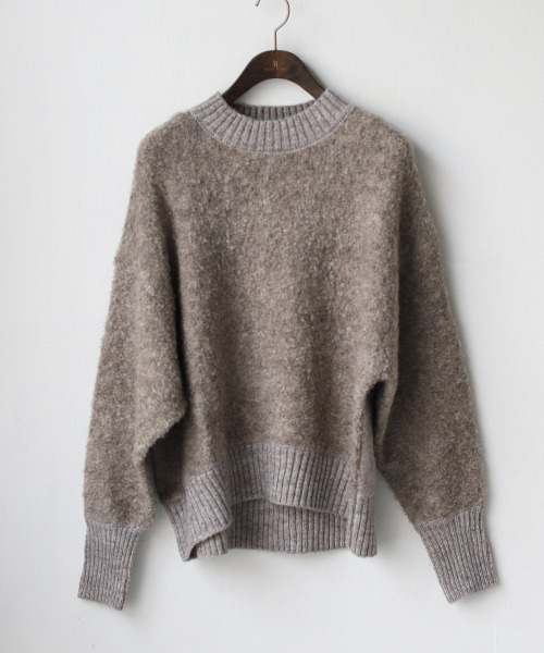 ワイドリブ×リングヤーンで女性らしくふわっとした風合いが魅力のニットプルオーバー。とっても軽くて暖かいので冬のワードローブに最適。襟周りも空きがなく暖かい。袖口も長めリブなのも女性らしさUP![サイズ(cm)]M:総丈 前56 後ろ62 バスト128 [お手入れ方法]ドライクリーニングにてお手入れしてください。