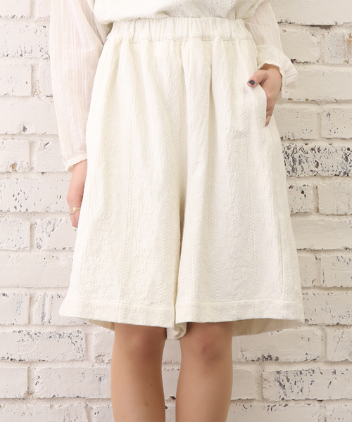 Kastane(カスタネ) 織り柄がポイント。ウエストがゴムなので履きやすいです。同シリーズのトッップスやタンクトップもそろえているのでSETUPもオススメです。
