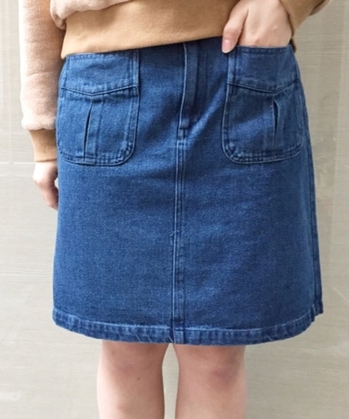 Kastane(カスタネ) ベーシックな台形スカート。サイズ展開がXS/S/M/Lと広く展開しているのでジャストサイズを選んでいただけます。フロントの大きめのポケットがポイント。春色カラーを作りましたので、コートの中に着ても春気分を感じることができます。