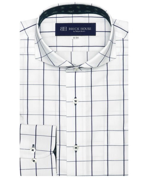 白地にブルーの格子柄が爽やかさを 演出してくれるホリゾンタルワイド。別布のペイズリー柄がノータイでも オシャレ度をアップしてくれます。【衿型】ホリゾンタル ワイドカラー【仕様】カフリンクス使用可能な兼用カフス(アジャストボタン)中丸カフス胸ポケット(左胸)付き(ホームベース型)背タック・背ダーツなし衿キーパー:差込式(予備キーパーなし)台衿内側・カフス裏側:別布仕様前立:裏前立仕様※サイズ[首回り42cm]のお届け商品の縫い付けタグはLL表記、 サイズ[首回り43cm]のお届け商品の縫い付けタグはXL表記でございます。 ZOZOTOWNの検索サイズと異なりますのでご注意ください。【BRICK HOUSE by Tokyo Shirts / ブリックハウス バイ トウキョウシャツ】業界トップ水準を誇るノーアイロンの形態安定加工は自宅で洗濯可能でお手入れ簡単!高度な縫製技術を用いた高付加価値シャツでありながら選ぶことを気軽に楽しめます。ベーシックから多様なデザインまで幅広いバリエーションで豊富なサイズ展開で、ディテールの隅々にまで織り込んで一枚一枚丁寧に仕立てられたシャツです。