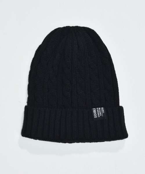 柔らかく暖かいディテールのケーブル編みニットキャップ。挟みネームがさりげなくアクセントに。*素材 ケーブル編み*品質 アクリル 100%