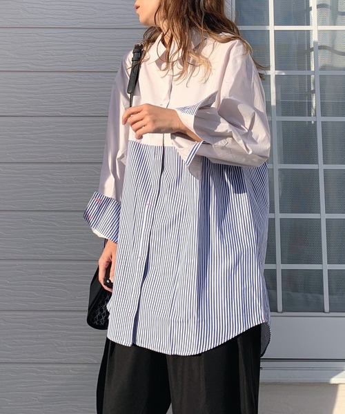 無地とストライプの切り替えが目を惹くドッキングシャツです。シンプルなシルエットですが、ドッキングの切り替えが1枚でおしゃれに決まります。羽織としてはもちろん、ビスチェなどトレンドライクなレイヤードコーディネートも◎キレイめスタイルからカジュアルまで幅広いシーンで活躍しそうです。寒い時期はタートルとの重ね着や、ニットのインなど様々なスタイリングをお楽しみください。《インフォメーション》◆商品のお気に入り登録完売していても再入荷時に再入荷通知を受け取ることができますので、是非ご登録ください。◆ブランドのお気に入り登録新商品や再入荷などの情報を受け取ることができますので、是非ご登録ください。