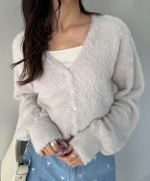 トレンドのハートボタンが可愛いカーデ ■デザイン ・大人気のハートボタンカーディガンが新たに登場! ・存在感のあるハートボタンがコーデのワンポイントに。 ・ハート釦は大きすぎず、誰でも着やすいデザイン。 ・冬のアウターにも合わせやすい淡いカラーリングに仕上げました。 ・毛足が短いので、着膨れしないのも嬉しいポイント。 ・コンパクトなシルエットで今年らしいスタイリングにぴったりです。 ■カラー ・オフホワイト/グレージュ/ミント/チャコールの4色展開 ■スタイリング ・ミニスカートでカジュアルに。同系色のチュールスカートやワンピースでフェミニンに。 ・ボトムで雰囲気を変えてコーディネートが楽しめます。 ・冬はタートルネックインナーをレイヤードしても◎ ・デニムパンツやカーゴパンツを合わせて、カジュアルスタイリングもおすすめです。 ■POINT 冬服、冬コーデ、クロップド丈、短丈、ショート丈、ボリューム袖、ボリュームスリーブ、ハート、韓国ファッション、韓国コーデ、ガーリー ----------------------------- 裏地:なし 光沢感:なし 透け感:なし 伸縮性:あり 手洗い: 可能 タンブラー乾燥: 不可 アイロン: 110℃まで ----------------------------- model:166cm ※着用、お取り扱いの際は、商品についている品質表示とアテンションタグを必ずご確認下さい。 ※ご覧のモニター環境や撮影環境により実際の商品と多少色味が異なって見える場合がございます。ご理解の程よろしくお願いいたします。 ※引っかけ注意 ・粗い組織のものや、表面に凹凸があってルーズな組織のもの 表面に糸が浮き出ているものは、ちょっとした不注意から引っかけてしまいがちです。 取り扱いの際は取り扱い絵表示確認の上、十分注意してください。 ・着用時にベルトや、バックや周囲の壁など表面の粗いものとの摩擦や引っかかりに注意してください。 ・水洗いやクリーニングの際にも他の物ものとの引っかかりに注意して下さい。 ■お気に入り登録のおすすめ 【気になるアイテムを登録】ハートをクリックしてお気に入りに登録すると完売カラーの再入荷やラスト1点の通知、セールの通知を受けとることができます。 【ブランドを登録】新商品や再入荷、セール通知など、いち早くブランドの情報を受けとることができます。