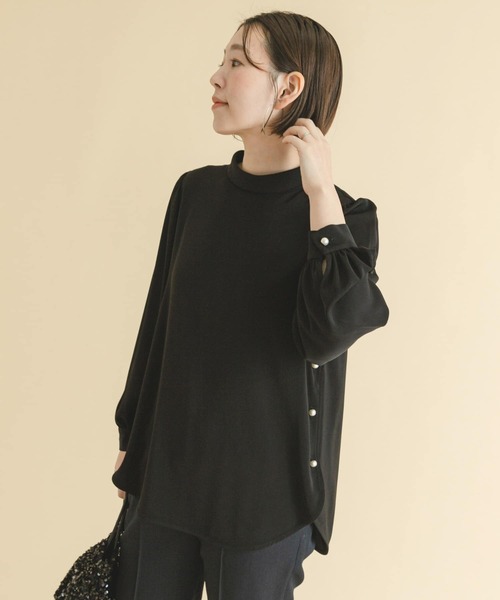 【パールのアクセントが効いた、華やぎハイネックブラウス】 シンプルな中にも、細部のディテールにこだわったハイネックブラウスが登場。サイド・袖口・バックネックにパールをあしらった、上品フェミニンな印象の一着です。裾のヘムライン×お尻が隠れる嬉しい着丈が、こなれ感を演出。程よい厚みの、柔らかな風合いで仕立てました。セレモニーシーンにお勧めで、ジャケットやジレとのレイヤードスタイルも映える一品に。 【F by ROSSO(エフバイロッソ)】 「母・妻・私 しなやかに行き来する服」をブランドコンセプトに、様々なシーンを行き来する大人の女性に向けた、ユースフルなファッションを提案します。 【2024 Spring/Summer】【24SS】 ※商品画像は、光の当たり具合やパソコンなどの閲覧環境により、実際の色味と異なって見える場合がございます。予めご了承ください。 ※商品の色味の目安は、商品単体の画像をご参照ください。 ▼お気に入り登録のおすすめ▼ お気に入り登録商品は、マイページにて現在の価格情報や在庫状況の確認が可能です。 お買い物リストの管理に是非ご利用下さい。 素材感 透け感 : あり(OFF WHITEのみ) 伸縮性 : ややあり 裏地 : なし 光沢 : なし ポケット : なし