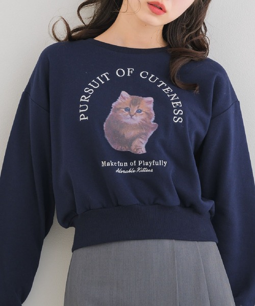 〈大人気のCatsプリントでねこちゃんの虜に♪〉 ▼デザイン フロント部分に大きくプリントされたCatちゃんたちがとっても可愛いトレーナー 前回も大人気を頂いたアイテムなので、春先に使いやすい素材感にブラッシュアップして再登場です。 内側は裏起毛でとっても暖かい♪ カラーバリエーションも女の子の大好きな甘めカラーと、トレンドカラーを抑えています。 ▼コーディネート ボトムにチュールスカートを合わせて、フレンチガーリースタイルに! ネコちゃん主役のスタイリングで存在感たっぷりコーデに♪ ------------------------------ 生地感:普通 伸縮性:ある 透け感:なし 裏地:なし ------------------------------ ▼ブランド紹介 ems excite (エムズエキサイト) “more fun more cute” 今をもっと楽しく もっと可愛くいたい女の子に向けた girly cuteなブランド #キャット #猫コーデ #子猫プリント #フレンチガーリーコーデ #フレンチガーリー #トレーナー #ショート丈 #ショートトレーナー ▼注意事項 ※撮影環境やモニター環境によって実際の商品とお色味が 多少異なってみえる場合がございます。 品番:EP457111T001 / 品名:CAT裏毛トレーナー