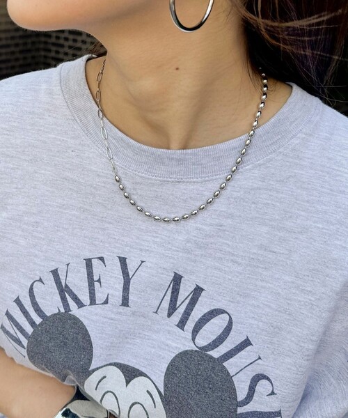 ◇fredy emue◇ チェーンとボールの組み合わせがポイントのネックレス ●point ・異なるチェーンデザインが洒落感たっぷりの1品 ・普段使いしやすく、シンプルコーデに付けるだけでこなれた印象に! ・マンテルは金具として後ろに付けるのはもちろん、首元にチャームのようにするのも◎ ・1つ持っておけば大活躍間違いなしです ・シンプルなTシャツコーデやデコルテが見えるスタイルに付けるとより映えるアイテムです ●お取扱い上のご注意● *アテンションタグを必ずご確認の上、着用又はお取り扱い下さい。 *店頭及び屋外での撮影画像は、光の当たり具合で色味が違って見える場合があります。商品の色味は、スタジオ撮影の画像をご参照下さい。 *商品画像に関しては出来る限り忠実に表示出来るよう努めておりますが、お客様がご利用のモニターの設定及び特性により、実際の商品と比較し色味に若干の誤差が生じる場合があります。 *画像の商品はサンプルとなりますので実際の商品と仕様、加工、サイズが若干異なる場合がございます。 ◇商品のお気に入り登録◇ 【お気に入りに登録 ♡マークをクリック】を是非ご活用ください! 再入荷の通知や、ラスト1点の通知、セールの通知がいち早く届きます。 ◇ブランドのお気に入り登録◇ 新商品や再入荷など、いち早くブランドのお得情報が届きます。
