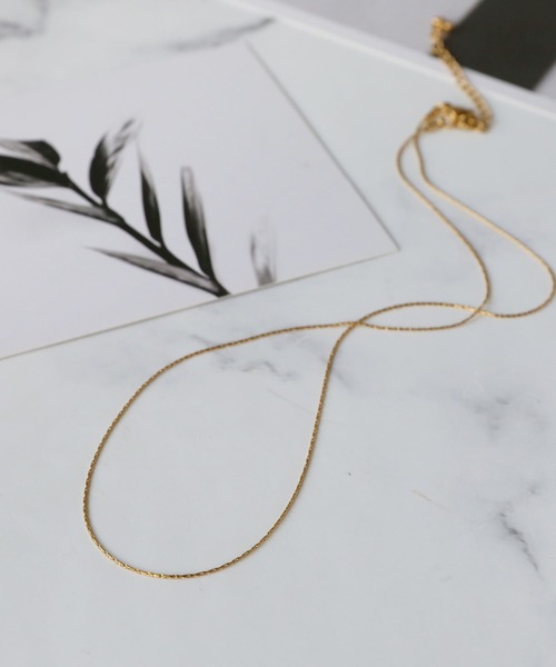 極細のチェーンを使った繊細なラインのスキンネックレスです。金属アレルギーが起きにくく丈夫で変色しないステンレス製のチェーンで、トップのない限りなくシンプルなデザインに仕上げました。無駄がなく凛とした印象で、大人の女性にぴったり。しなやかなチェーンが自然に首に沿い、とても軽い着け心地です。普段使いはもちろん、オフィスカジュアルや結婚式の二次会などのオケージョンスタイルにもおすすめ。【pick up points】・金属アレルギーを引き起こしにくいステンレス製・丈夫で傷がつきにくく、錆びにも強く変色しづらいので長くお使いいただけます。・男性でも使いやすいシンプルなデザイン・アジャスター付きで長さの調整が可能*注意事項撮影場所やイメージにより実際の商品と色味が若干異なる場合がございます。商品のお色味はカラーバリエーション画像をご参照ください。◆《お気に入り登録》のおすすめ◆気になる商品は「お気に入り」登録がおすすめ。・「商品のお気に入り登録」で再入荷通知や、ラスト1点の通知、セール通知も受け取ることができます!・お気に入り登録商品は、マイページにて現在の商品詳細(価格情報や在庫状況)が確認が可能です。お買い物リストの管理に是非ご利用下さい!