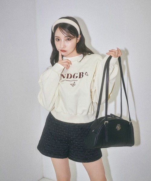 ドロップショルダーデザインでフロントにロゴ刺繍をあしらったスウェット。UNISEX バタフライロゴ裏起毛スウェット(AG234CS1207) とカップルコーデもおすすめ。