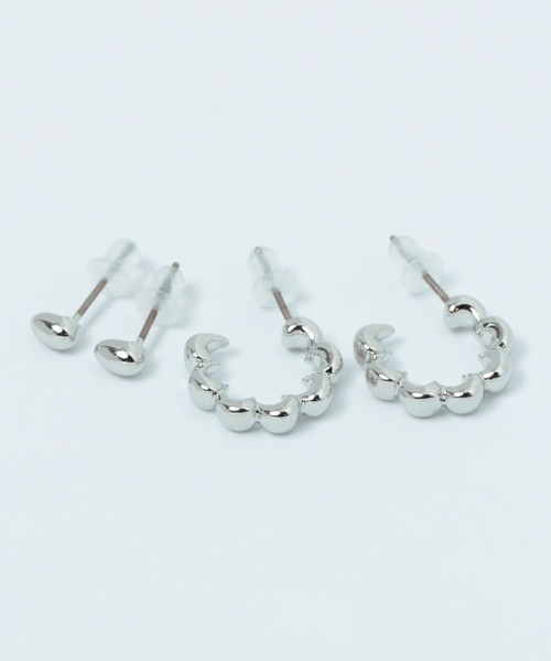 ーーー使いやすい2デザインのピアスセット。どんなシーンでも使える雫デザインと、雫が連なったフープデザインがセットになっています。単品やセットでお使いいただくのはもちろん、お手持ちのピアスと組み合わせても◎ーーー
