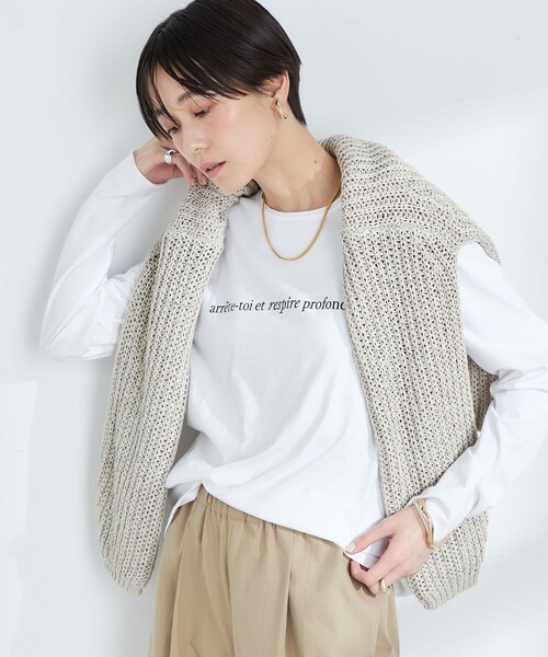 ◇24SS◇ 2nd NOLLEY'S ◆Point ・光沢と柔らかさが特徴のとても着心地の良い素材を使用したロゴロンT ・ゆったりとしたサイズ感、襟の断ち切りデザイン、袖口の細ロック始末がこなれた雰囲気の1枚 ・シャツやスウェットのインナーとしても活躍 ・スタイリングに抜け感が出せるアイテム arrere-toi et respire profondement…フランス語で「立ち止まって深呼吸」という意味 【ホワイト】文字ブラック 【ホワイト系その他2】文字ゴールドラメ ●お取扱い上のご注意● 末永くご愛用頂くために、アテンションタグを必ずご確認の上、着用又はお取り扱い下さい。 ※手洗い可 気になる商品は、お気に入り登録がオススメです! クーポン情報、入荷情報が、通知されるようになります。 ※店頭及び屋外での撮影画像は、光の当たり具合で色味が違って見える場合があります。商品の色味は、スタジオ撮影の画像をご参照下さい。 ※商品画像に関しては出来る限り忠実に表示出来るよう努めておりますが、お客様がご利用のモニターの設定及び特性により、実際の商品と比較し色味に若干の誤差が生じる場合があります。 ※画像の商品はサンプルとなりますので実際の商品と仕様、加工、サイズが若干異なる場合がございます。