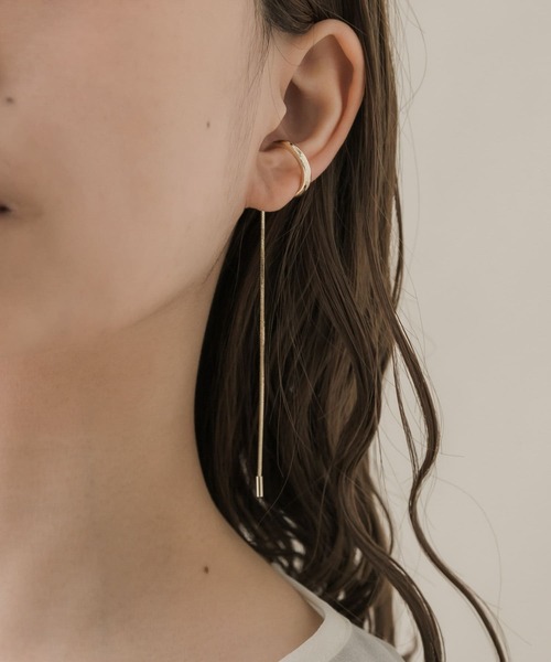 【シンプルかつ特徴的】定番のフープシルエットのイヤーカフにスネークチェーンを垂らしたロングシルエットのアイテム。シンプルなデザインながら、長めのチェーンが程よい存在感を発揮。ノンホールの方やイヤリングが苦手な方も取り入れやすいアイテムです。【2024 Spring/Summer】【24SS】※メッキ製品(特に銀メッキ)は変色しやすいため、こまめなお手入れで防止してください。長期放置やスプレー香料などの同時使用は、特にお避けください。※メッキ製品は、アレルギー体質の方や体調が低下している方など、かぶれることがあります。肌に異常を感じた時はご使用をお止めいただき専門医にご相談ください。※アクセサリーは壊れやすいものです。取り扱いに注意していただき大切にご使用いただけるようお願い申し上げます。※商品画像は、光の当たり具合やパソコンなどの閲覧環境により、実際の色味と異なって見える場合がございます。予めご了承ください。※商品の色味の目安は、商品単体の画像をご参照ください。▼お気に入り登録のおすすめ▼お気に入り登録商品は、マイページにて現在の価格情報や在庫状況の確認が可能です。お買い物リストの管理に是非ご利用下さい。