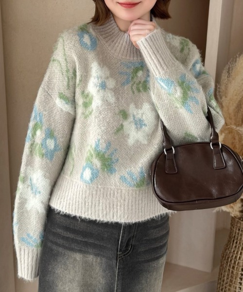 ▼design冬ムードが高まる華やかな花柄にラメが散りばめられたジャカードニット。程よい厚み起毛感のある素材で身体のラインを拾いにくく、ON/OFFで様になる一品です。ニュアンス感のある花柄はどのシーンにも重宝します。▼fabricラメ入りジャカードニット素材-----------------------------透け感:なし光沢感:なし伸縮性:あり裏地:なし洗濯:手洗い○-----------------------------※お取り扱い上のご注意※モニター環境等により実際の商品と多少色味が異なって表示される場合がございます。予めご了承下さい。屋外で撮影された商品は、天候により多少実際のカラーと異なる場合があります。商品のカラーを参考される場合はトルソー(マネキン)の画像をご参照ください。濃い色の商品は、お洗濯や摩擦等による移染にご注意ください。末永くご愛用頂く為に、アテンションタグ・洗濯ネームを必ずご確認の上、着用又はお取り扱い下さい。生産時期により、色、サイズ、デザイン、素材の質感が多少異なる場合がございます。あらかじめ御了承下さい。