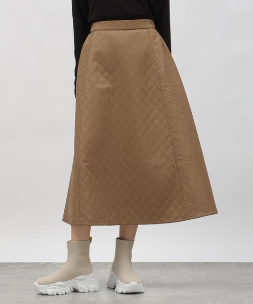 フレアに広がるシルエットのスカート。ウエストは後ろゴム入りで、フロントはきれいめに見えて履き心地も〇丈を短めに設定しているので、すっきりとした印象の1枚です。【素材】ダイヤ柄のキルトが上品な雰囲気。【スタイリング】合わせるトップスを選ばずスタイリングできるアイテムです。キルトの落ち着いた雰囲気がブラウスやシャツ、ニットやカットソーまで様々なテイストのトップスと相性〇