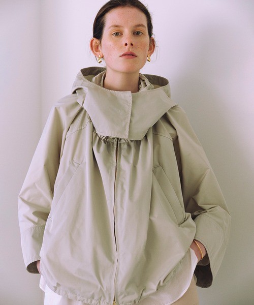 トップスを着こめるサイズ感で長い季節使えるのが嬉しい、上質なツイル素材を使った三角シルエットのマウンテンパーカー【素材】 世界のトップメゾンからも信頼される超高密度合繊織物を作成する福井県第一織物の素材を使用。美しく深い光沢感を持つツイル素材は独特なメモリータッチでフォルムがきれいに出るのが特徴です。 【デザイン・シルエット】 構築的なパターンで設計するマウンテンパーカは三角形のシルエットがポイント。着る人の体系を選ばずリラックスした着心地です。高いスタンドカラー、肩線をあいまいにしたワイドなドルマンスリーブ、ギャザーを活かしたシルエットはモードな雰囲気を纏います。フードはファスナーで取り外し可能。 【カラー】 薄いグレー、ダークネイビーの2色展開 【おすすめのスタイリング】 バルーンスカートを合わせた新しいスタイリングを提案。カジュアルになりがちなマウンテンパーカーに、バルーンスカートを合わせることで、上品な印象に格上げしてくれるスタイリングに仕上がります。デニムやスラックスなどのパンツ合わせのコーディネートも〇。ワイドスリーブなので袖口からタイトなニットやカットソーをのぞかせるのも素敵です。 ---------------------------- 透け感:なし 裏地:なし 伸縮性:なし 光沢感:あり 生地の厚さ:薄手 ポケット:あり 開き方:ファスナーあき 洗濯方法:手洗い可能 ---------------------------- 【モデル情報】 モデル身長:168cm 着用サイズ:38 【雑誌掲載】 BAILA 4月号(2月28日発売) P.17 #07グレー着用 VERY 4月号(3月7日発売) P.140 #40ネイビー着用 ※画像の商品はサンプルです。実際の商品と仕様、加工、サイズが異なる場合がございます。 ※撮影場所やライティング、お使いのモニター環境によって色の見え方が異なる場合がございます。 ※商品のカラーは画像の色味をご参照ください。動画は仕様説明のため、色味が実物と異なる場合がございます。