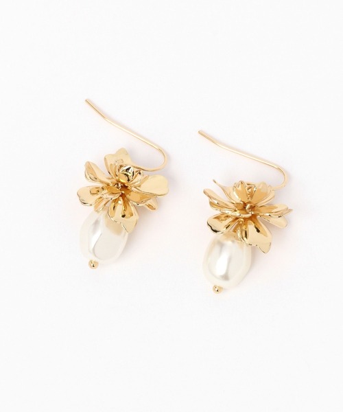耳元を彩るアクセントに 立体的なお花モチーフとパール調の組み合わせが女性らしい印象のピアス。 動くたびに揺れて、程よいボリューム感が目を引きます。 デイリーにはもちろん、オケージョンシーンにもおすすめです。