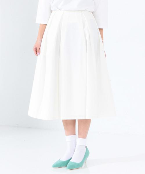 タックロングスカート☆タックの入ったふんわり広がるシルエットのミモレ丈スカートは、ハリ感のある生地でフェミニンになりすぎず、カジュアルに着ていただけます。ウエストの後ろは内側がゴム仕様になっているので着心地も良く、トップスをインしてもウエストラインがキレイに見えるのもうれしいポイントです。ベーシックなカラー展開で大人っぽく着こなしていただける一枚です。※着用、お取り扱いの際は商品についておりますアテンションタグ、洗濯ネームを必ずご確認ください。店舗にお問い合わせの際は、全国のAnother Edition店舗まで下記の品名/品番をお申し付け下さい。品名:AEFC PE/C TUCK LONG SK品番:56242991324※画像の商品はサンプルです。実際の商品と仕様、加工、サイズ、素材が若干異なる場合がございます。