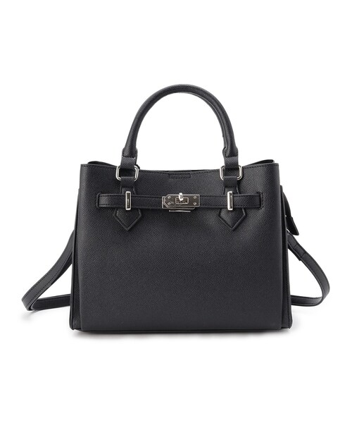 【デザインポイント】 どこかエレガントさを演出してくれるデザインバックル付きのハンドバッグです。 ひねり金具のアクセントと外付けのハンドルで上品感ある見え感に仕上げました。 ハンドルは外側に倒せるデザインです。 肩掛け、斜め掛け可能なショルダーは取り外し長さ・調整も可能です。 中は三つ仕切り仕様になります。 ※ポケット数:内側×3 【スタイリングポイント】 エレガントさとファッション性を兼ね備えたアイテムです。 セレモニーシーンからデイリーまで幅広く、スタイリングに上品さをプラスしてくれます。 カジュアルなスタイルに合わせてもぐっとこなれ感を演出してくれます。 店舗へのお問い合わせ商品番号:127-08100 ●製品寸法: 00(FREE):高さ21cm 幅(上部)23cm 幅(下部)26cm マチ9.5cm 持ち手上がり10cm 付属ショルダー対応サイズ65~121cm 備考:重量:約640g(サンプル重量)