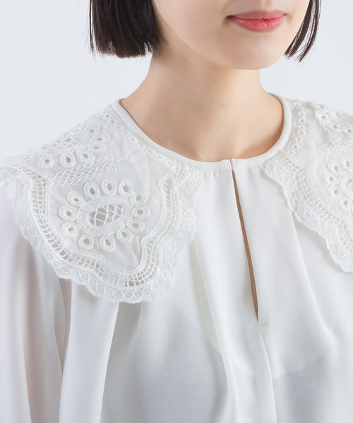 ■おすすめシーン・入学式(入園式)、卒業式(卒園式)、学校行事、参観、七五三、お宮参りなどのセレモニーシーン・2次会などのカジュアルなパーティーシーンオンにもオフにも使える♪PICCINオススメのセレモニースタイルこちらの商品は入学式や入園式、卒業式などにも使えるオケージョン対応商品です。セットアップはもちろん、単品でお手持ちのアイテムにプラスしてオケージョンに使え、 用途が済んでもカジュアルダウンして普段使いも出来るアイテムばかりです。柔らかなジョーゼット生地にトレンドの襟がついたブラウススカラップのカットワークレースの襟がお顔回りに華やかさをプラスし前後2wayで着用可能なのでビブカラーとしても楽しめます。袖はカフスで小さなパールボタン付き。フロントホック開閉ご自宅で手洗い可能なハンドウォッシャブルアイテムです。【詳細情報】厚み:■薄手 □ふつう □厚手透け感: ■なし □あり光沢感: ■なし □あり伸縮性: ■なし □あり裏地: ■なし □ありポケット:■なし □あり ※撮影場所や明るさにより実際の商品と色味が若干異なる場合がございます。 ☆商品のお気に入り♡登録を押せば”再入荷通知”や”残りわずか通知” 値下げのお知らせが届きます!お気に入りのブランド登録していただければ新商品入荷のお知らせも届きますので是非登録してみて下さい