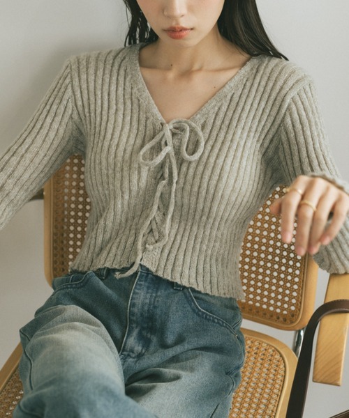 レースアップリブニット… Design …・レースアップのフロントデザインで女性らしく・カラー×アイボリー糸を引きそろえたミックスニット・コンパクトなサイズ感とクロップド丈でスタイルアップ・軽量かつ伸縮性抜群のリブ編みで着心地◎・レースアップは編み上げのみならず一番上のみリボン結ぶカーディガンスタイルも・春らしいピンク、ライトグリーン、ライトブルーベーシックに使いやすいライトグレー… Styling …デザインとシンプルのいいところどりトップスレースアップはきつめにしてキャミソールあわせて1枚着、ハイネックインナーを入れてあえてゆるめのレースアップでフロントからインナーをちらつかせてベーシックなかたちでスカート、パンツ選ばない万能アイテムでクロップド丈をいかしてハイウエストのボトムスやボリューム感のあるボトムスをあわせるとよりスタイルアップ━━━━━━━━━━━━━━━━━━━━━透け感:なし裏地:なし厚さ:普通伸縮性:あり光沢感:なし━━━━━━━━━━━━━━━━━━━━━━※詳しくは洗濯タグをご確認くださいInstagramに着用動画もUPしています。是非あわせてご覧ください。公式Instagram→@vannie__u公式LINE→@780hnknpYouTube「のののちーびー」ではVANNIEのディレクターののがVANNIEのアイテム紹介や着回しを更新中。●商品のお気に入り登録♡をクリック!完売カラーの再入荷通知や残り1点の通知、お得なタイムセール通知も受け取ることが出来ます。●ブランドのお気に入り登録新商品や再入荷など、ブランドの情報をいち早くお知らせします。ぜひご登録ください!