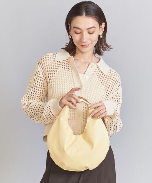 彫刻的なハンドルモチーフが特徴の<LE VERNIS>新型「SCULPTURE」バッグ ■デザイン <LE VERNIS>より、彫刻を意味する「SCULPTURE」シリーズが新登場。 オリジナルで作製されたメタルハンドルがアクセントを利かせるラウンド型バッグ。 アーチ部分が手や肩に馴染むよう何度も改良を重ね、持ちやすさにもこだわっています。 丸みのあるフォルムと柔らかなボディの質感で、カジュアルに持ちやすい雰囲気に仕上げた一品です。 ■素材 合成皮革 ■コーディネート ミニマルなデザインながら独特な存在感を放つアイテムは、スウェットやTシャツなどラフなスタイルのカジュアルアップにもぴったり。 春夏シーズンは、レースやシアー感のあるブラウスに合わせたフェミニンムード薫る装いもおすすめです。 <LE VERNIS(ルベルニ)> 自らのIDENTITYを見失うことなく変化を恐れない、アクティブで自由なライフスタイルそのものを楽しむことのできる大人の女性に向けたブランド<LE VERNIS>。 シーズンごとに旬のディティールを取り入れ洋服とのコーディネイトを楽しめる、少しだけラフでスマートな小物の提案をしています。 【注意事項】 ※商品を使用前に、タグ等に記載されている「取り扱い上の注意書き」、「洗濯表示」を必ずご確認ください。 ※商品画像は、光の当たり具合やパソコンなどの閲覧環境により、実際の色味と異なって見える場合がございます。あらかじめご了承ください。 ※商品の色味の目安は、商品単体の画像をご参照ください。 ※画像の商品はサンプルです。 店舗へお問い合わせの際は、全国のBEAUTY&YOUTH各店舗まで下記の品名/品番をお申し付けください。 品名:BL L/V SCULPTURE BAG S 品番:18325996378