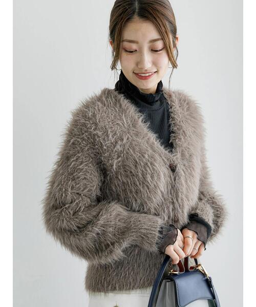 毛足の長いフワフワのシャギーニットで仕立てたカーディガン。 顔周りをすっきり見せてくれるVネック仕様なのもポイントです。ショート丈でバランスもとりやすく、脚長なスタイルアップ効果も後押ししてくれます。 ナチュラルなカラーで品良くスタイリングでき、着回しやすいアイテムです。 ※商品画像は、撮影環境やお客様のご利用のPC・スマートフォンのモニター環境などにより実物と色味に差異がある場合がございます。